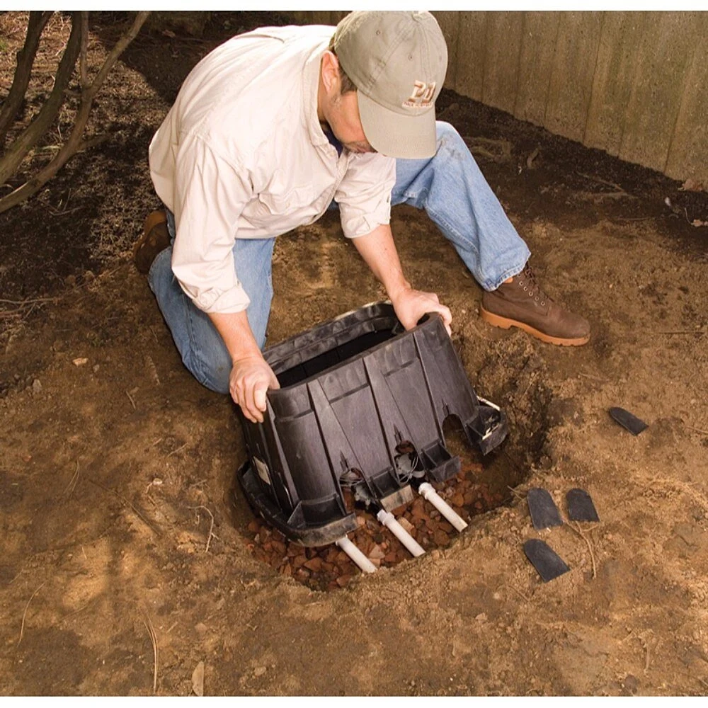 Regard d’arrosage automatique rectangle JUMBO VB-JMB en polyéthylène haute densité, avec côtés renforcés pour une protection accrue des vannes, marque Rain Bird