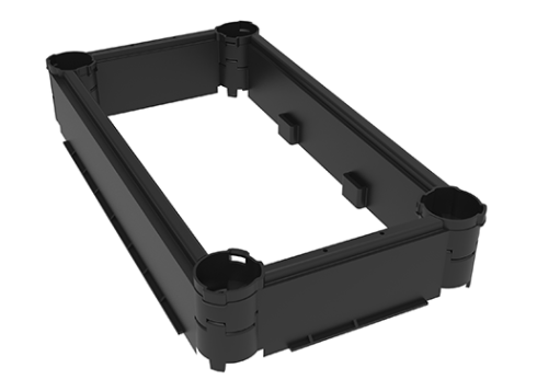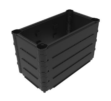 Chaque module Stakkabox Fortress est constitué de 4 pièces droites assemblés par simple clipsage. La combinaison de différentes longueurs permet de réaliser un large évantail de dimensions.