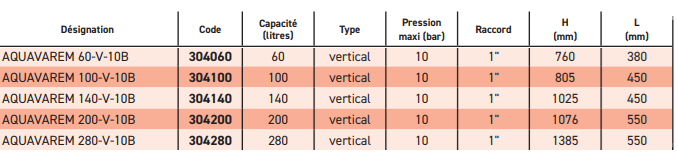 Réservoir à diaphragme Aquavarem - 60L à 280L Vertical