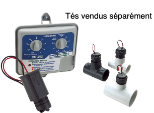 Pour cette raison Hunter a créé la sonde de débit Flow-Clik, qui protège le site en cas de rupture sur l'un de vos équipements. La sonde Flow-Clik Hunter peut être programmée au débit souhaité. Elle coupe votre système d'irrigation au moment où elle détecte un débit supérieur à la limite programmée. Cela permet donc une réduction de la quantité d'eau perdue et les dommages subis par le système, en cas de fuite extérieure importante. Té fileté adaptable vendu séparément