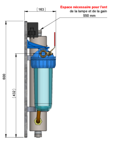 - Filtration double : Hauteur 10 pouces avec filtre à particules 25 µm et filtre à charbon