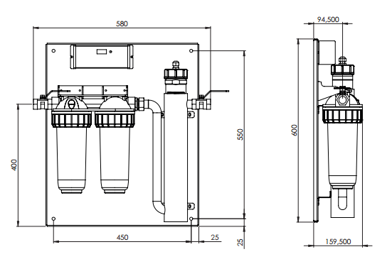 - Système combinant filtration, purification et stérilisation UV.