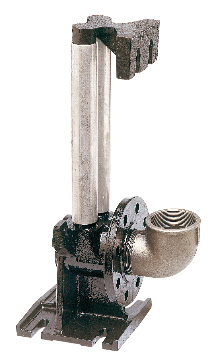 Dispositif de relevage pour tubes guidés de 1''1/4 (non fournis), avec pied d'assise, coude et bride de raccordement pompe.