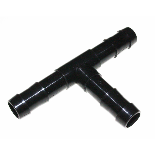 Té cannelé 16x16x16 utilisé pour raccorder trois tuyaux et/ou dripline de Ø16mm dans une application d'arrosage localisé.