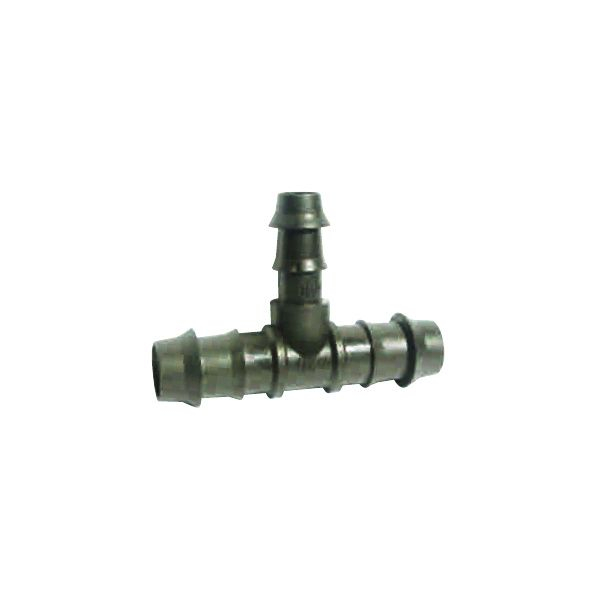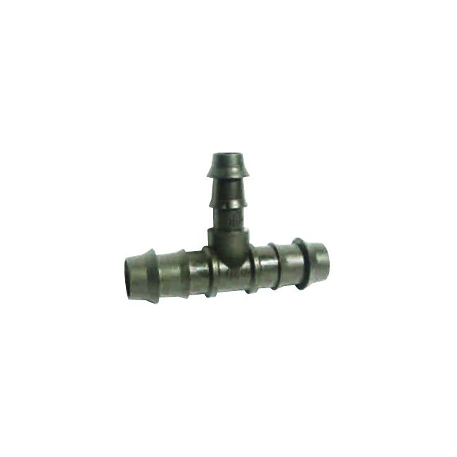 Té cannelé 20x16x20 utilisé pour raccorder deux tuyaux et/ou dripline de Ø20mm et un de Ø16mm dans une application d'arrosage localisé.