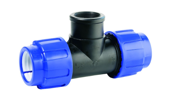 Té femelle à compression PEHD en polypropylène pour connexions fiables et durables.
