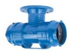 Raccords en fonte ductile pour tubes PVC-U ou PE. Revêtement époxy bleu appliqué par cataphorèse. Livrés avec les joints pré-montés et protégés par des bouchons. Raccords verrouillables par contrebride à visser 1/4 de tour