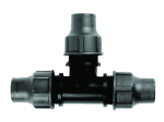 Té Palaplast 20x16x20 utilisé pour raccorder deux tuyaux et/ou dripline de Ø20mm et un de Ø16mm dans une application d'arrosage localisé.