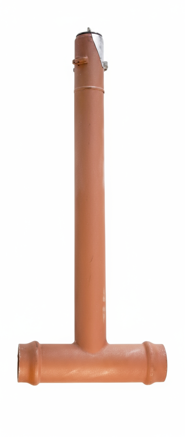 Le Té réhausse acier VBZ soudé est un raccord fondamental pour l'installation de vos bornes d'incendie ou de vos poteaux d'arrosage sur des conduites enterrées en PVC. Il s'agit d'une véritable colonne de remontée en acier qui crée une dérivation robuste et permanente sur la ligne principale.