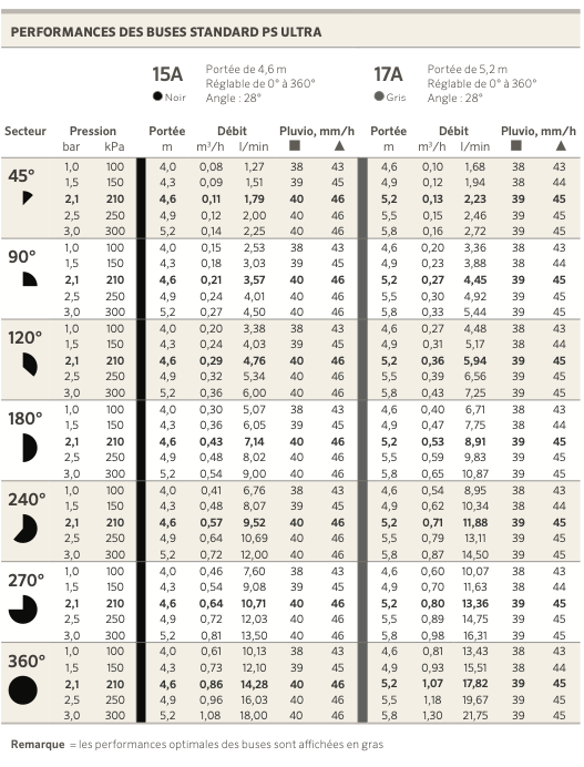 La tuyere PS Ultra est idéale pour les applications résidentielles standard, cette tuyère d’arrosage compacte est disponible en modèles de 5 cm, 10 cm et 15 cm. Son nouveau corps novateur intègre un cliquet fiable en deux parties, un couvercle robuste, un piston fileté mâle et un grand filtre assurant une double filtration sur les modèles de 10 et 15 cm.