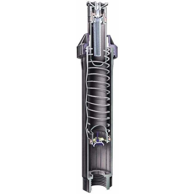 Élimination des infiltrations de débris grâce à un joint d’étanchéité. Réglage simple par un système à cliquet. La Tuyère Uny Spray accepte toutes buse Rain Bird.
