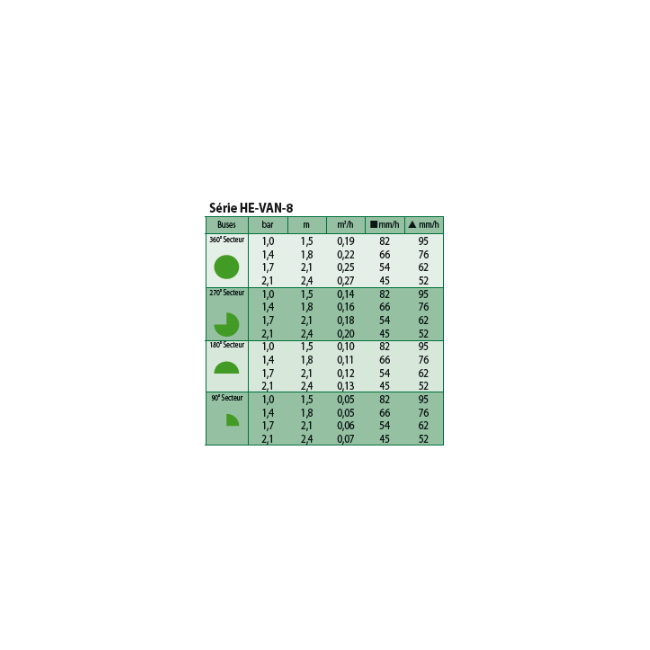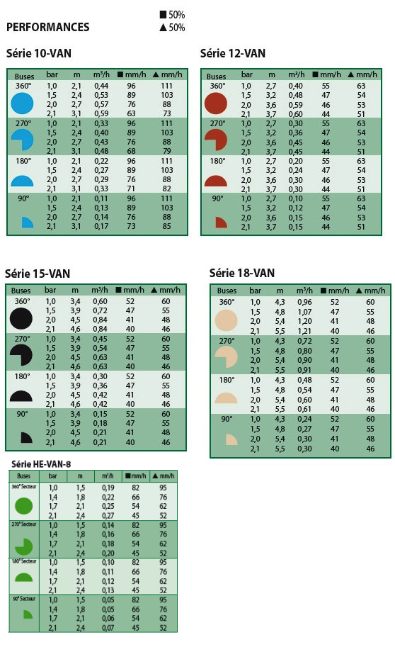 - Compatibilité : Compatible avec toutes les buses MPR (débit proportionnel à la surface arrosée) ainsi que les séries pour massifs et plates-bandes.