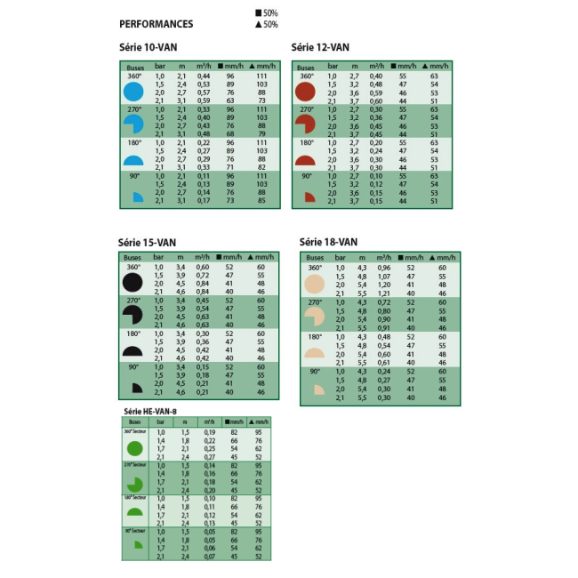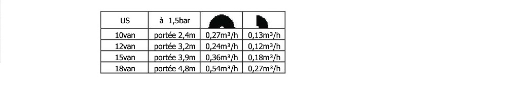 Pour plus de simplicité, les tuyères Uni Spray sont livrées avec des buses réglables Série van prè-installées. 2 hauteurs de soulèvement.