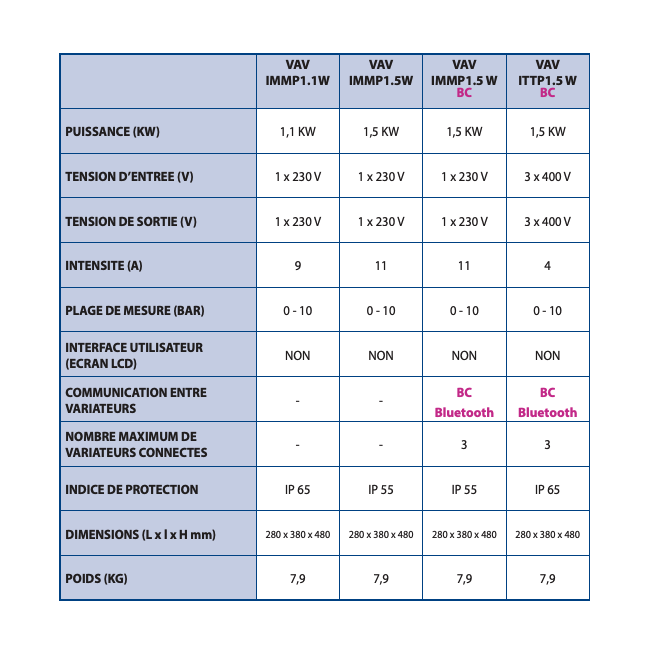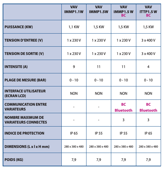 - Existe en modèle BC à connexion Bluetooth, peut fonctionner avec 3 modèles en simultané avec alternance des pompes.