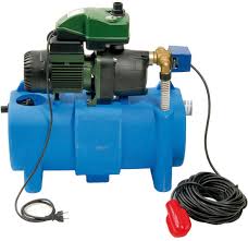• une pompe surpresseur JETcom qui aspire l'eau dans la cuve ou le ballon tampon si la cuve eau de pluie est vide, et la refoule vers les points de distribution, avec une pression suffisante.